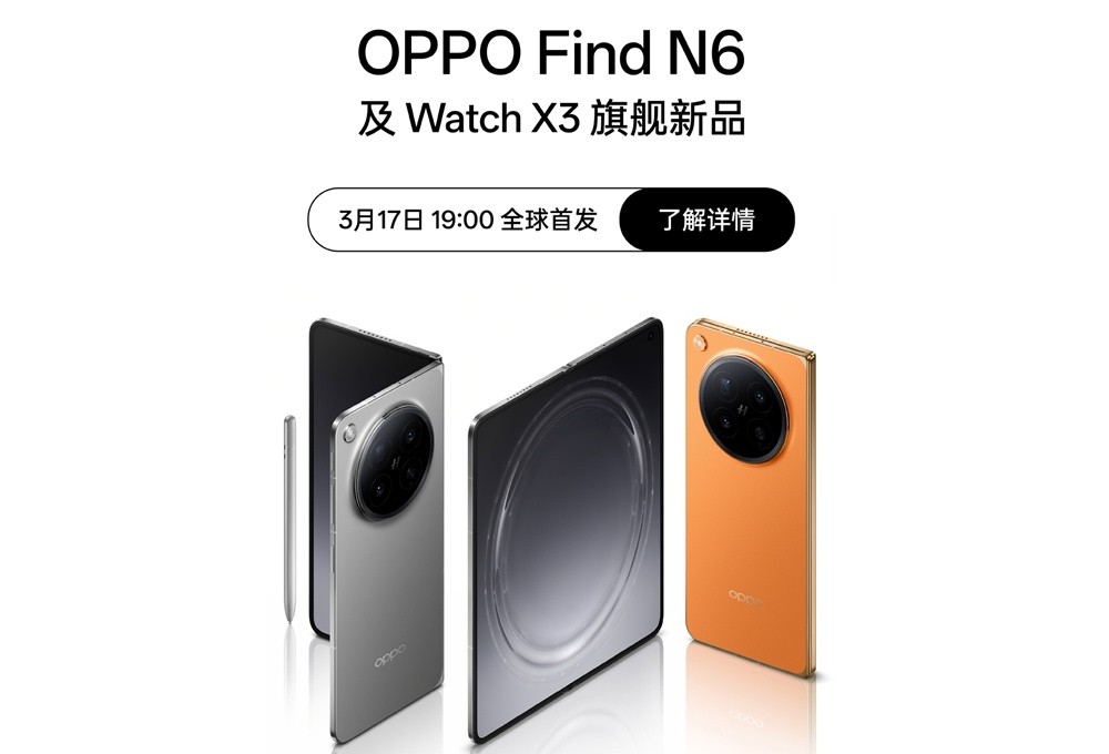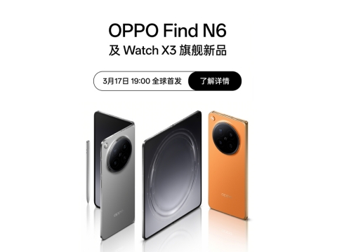 - OPPO Find N6发布:钛合金边框三配色主打轻薄质感 03-17